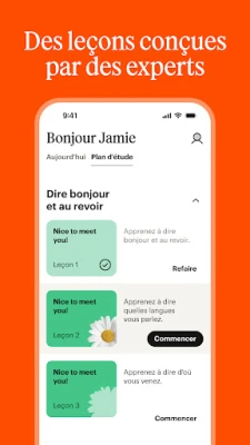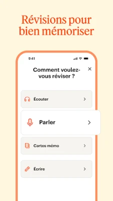 Chaque session avec Babbel est une expérience interactive enrichissante. Plongez dans des leçons conçues pour tous les niveaux, du parfait débutant au locuteur avancé, et participez à des classes en ligne dynamiques. Perfectionnez votre aisance orale grâce à la fonction "Conversations du quotidien", qui simule des échanges réalistes pour vous préparer à la vie de tous les jours. Babbel vous aide à rester motivé en vous permettant de fixer vos objectifs, de suivre vos progrès détaillés avec le traqueur d'activités et de vous lancer des défis stimulants via la fonction Séries. Maîtrisez la grammaire sans effort grâce à des explications claires et des exemples pertinents, et consolidez votre vocabulaire par des exercices variés incluant l'expression orale, l'écriture, l'écoute et des cartes mémos intuitives.