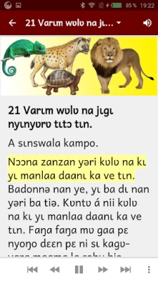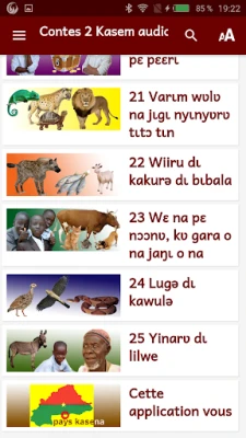 Découvrez treize contes captivants en langue kassem, parlée au Burkina Faso et au Ghana. Cette application unique vous permet de suivre chaque histoire en audio et en texte, pour une immersion complète dans la culture.