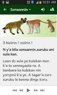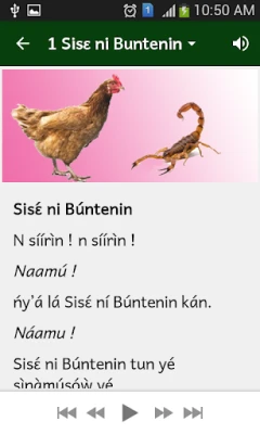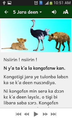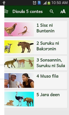 Plongez au cœur de cette richesse narrative avec cette application, qui vous invite à explorer un précieux recueil de cinq contes dioula. Chaque histoire, fidèlement traduite en français, devient accessible à un public élargi, permettant une découverte ou une redécouverte enrichissante. L'interface intuitive vous guide : il suffit de sélectionner l'une des cinq images illustrant chaque conte pour l'ouvrir. Pour une immersion totale, activez l'expérience auditive en pressant l'icône du haut-parleur située en haut de l'écran, puis lancez la narration avec le bouton de lecture en bas. Une expérience d'écoute immersive vous attend, vous transportant directement au cœur de ces récits envoûtants.