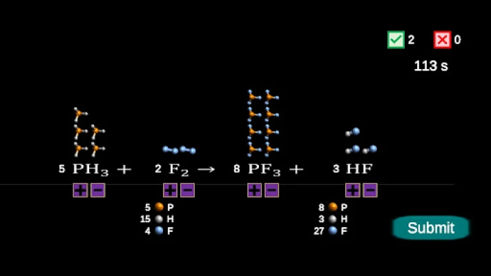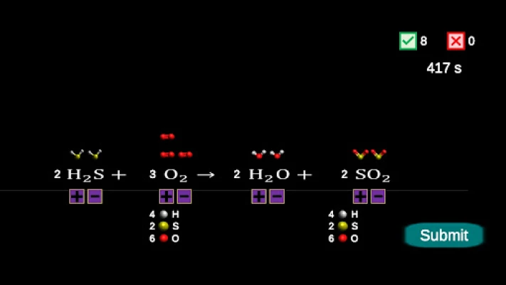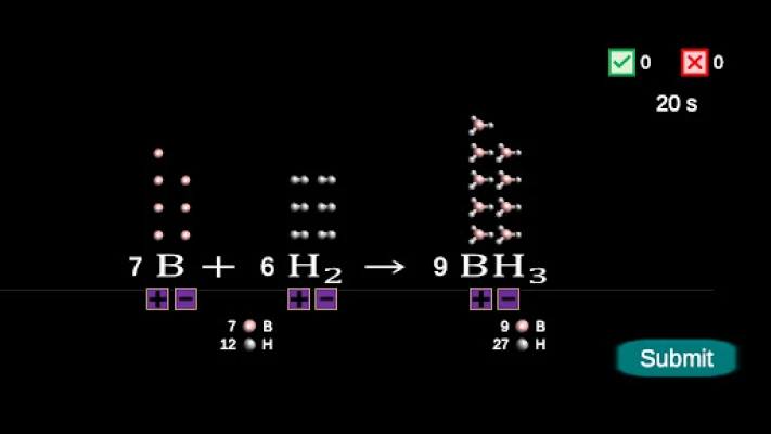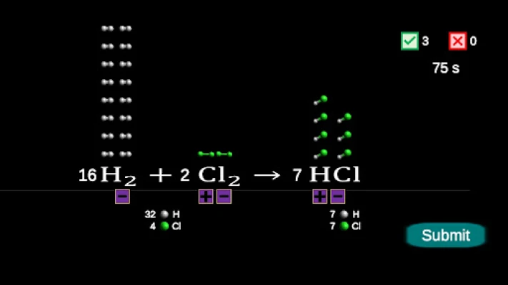 Découvrez une collection exhaustive de 60 équations chimiques, soigneusement organisées en différents niveaux de difficulté pour accompagner votre progression. L'application transforme l'apprentissage complexe en une expérience visuelle et interactive. Grâce à ses modèles moléculaires clairs, la structure de chaque équation prend vie sous vos yeux, rendant la visualisation des réactifs et des produits incroyablement intuitive. Les compteurs d'atomes intégrés représentent un outil précieux, vous permettant de vérifier instantanément la parité des éléments de part et d'autre de l'équation, validant ainsi l'exactitude de vos ajustements de coefficients.