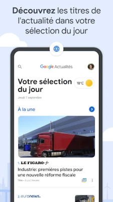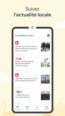 Dans un monde où l'information foisonne, il est essentiel de distinguer l'essentiel. Google Actualités vous offre une solution élégante pour rester informé, sans effort. Votre sélection du jour est un condensé intelligent et constamment mis à jour des nouvelles les plus pertinentes, couvrant l'actualité locale, nationale et internationale, tout en s'adaptant à vos centres d'intérêt spécifiques. Connectez-vous à ce qui se passe dans votre communauté grâce à une couverture locale approfondie, et personnalisez la plateforme pour suivre simultanément l'actualité de plusieurs lieux qui vous importent.