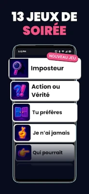 Lassé des soirées qui s'éteignent avant l'heure ? TOZ réécrit les règles du divertissement, métamorphosant chaque rassemblement en une explosion de rires et de défis mémorables. Conçue pour animer vos apéros, vos "before" ou vos virées étudiantes, l'application TOZ s'est imposée comme le complice incontournable des jeunes adultes en quête d'ambiance vibrante en France. Oubliez la monotonie, préparez-vous à des moments légendaires où la seule limite est votre audace.