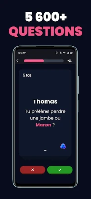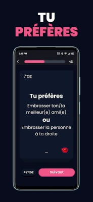 Au cœur de TOZ bat une collection inégalée de milliers de défis, questions percutantes et gages hilarants, tous conçus pour débrider les conversations et stimuler la bonne humeur. Que vous soyez en petit comité, en couple ou avec un grand groupe d'amis, TOZ s'adapte à toutes les dynamiques. Explorez des ambiances variées avec ses modes 'doux' pour des soirées décontractées, 'fun' pour des éclats de rire garantis, et 'hot' pour les plus audacieux. Retrouvez avec une touche de nouveauté les indémodables "Je n'ai jamais", "Action ou Vérité", "Qui pourrait" ou encore "Tu préfères", tous intégrés fluidement pour une expérience sans pareille, et ce, sans aucune publicité intrusive.